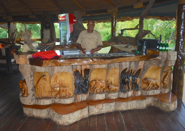 This fourth visit to Kikoti was shared with a group of friends and family. John, who tends bar and helps at meals remembers me from earlier visits so it feels like coming home to be here. The Maasai workers guide us back and forth from cabins in the evening to be sure we are safe from buffalo, waterbuck, and hyenas that routinely wander through the camp area. Gabriel, our skilled guide who traveled with us for ten days, told us of lion footprints found along the camp pathways while we were there. And that’s part of what makes a tent camp so charming. It’s built in wild places with very creative solutions for services. Many camps, Kikoti included, now get most of their electricity from solar panels, a step up from the generators of past times. They even have limited Internet access at the main office where you can recharge batteries and go online to check email.