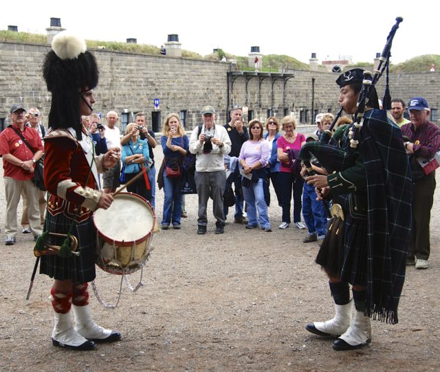 Costumed interpreters in Halifax, Nova Scotia, use music to share history and demonstrate cannon firing.