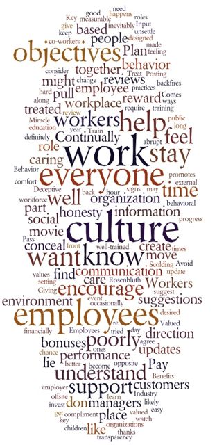 Workers stay with organizations a long time when they feel like they are working with people who care about them. Deceptive behavior or abrupt, unexplained decisions on the part of managers unsettle everyone. These tried and true suggestions can help you create a sustainable workplace based on thoughtful practices designed to build a culture of communication, caring and support. – Tim Merriman