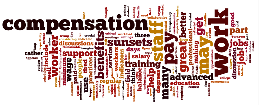 We do get paid in sunsets to some degree. It’s great to work in the outdoors, but sunsets will not repay student loans, build retirement funds or help you weather a severe illness or recession. Sustainable management practices include a thoughtful approach to total compensation of talented staff.