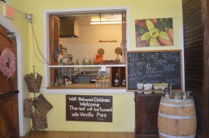 completed the tour, along with a short video to reinforce what we’d just learned about the process of growing and harvesting vanilla, followed by a cup of vanilla flavored coffee (along with cream and vanilla sugar if desired). Jim answered questions and shared a favorite quote, “dreams come one size too big so you can grow into them.” They had a big dream twenty years ago and they have grown into it, producing more than 1,700 pounds of vanilla pods each year. They also produce more than 80 unique products using their vanilla as an ingredient. It would be challenging to go through the meal and tour and then leave without buying vanilla flavored items at their gift shop and so of course, we loaded up a basket of goodies to enjoy later, including the “make your own extract” kit of a bottle with three vanilla beans (add your own liquor).