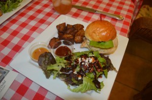 The lunch began with Jim, the founder, cooking an appetizer at table side that consisted of a delicious shrimp with vanilla infused spice rub, sautéed in olive oil and served on a crisp bread with vanilla mango chutney. The entrée was a tasty vanilla citrus bourbon chicken sandwich topped with vanilla caramelized onions on a vanilla-flavored sweet bread bun with a choice of vanilla aioli or vanilla BBQ sauce, roasted spiced potatoes and an organic tossed salad with a vanilla raspberry balsamic vinegar dressing topped with spicy honey-peppered pecans. We tried the vanilla-flavored Jimmy Boy beverage, their own version of the