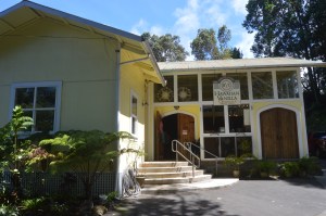 They have a capacity of 24 people per day, but I booked two tickets easily over the Internet, choosing the combination of the Vanilla Luncheon and a guided tour of the vanilla farm, a total of $84 plus tax. The tour alone is $25. The farm is about three miles uphill from the main highway between Honokaa to Hilo at the village of Paauilo, almost a two-hour drive for us. We arrived about noon at the yellow building that houses their food service and Vanilla Shoppe. The building was once a coffee processing plant and later a meat processing operation, since this part of eastern Hawaii has had a rich history of changing agricultural fortunes from sugar cane to coffee to ranching.